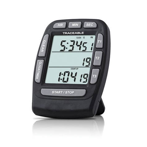 Triple Display Timer, Black, 3 Channels, 19 hours, 59 min, 59 sec Timer Range, 0.01% Timing Accuracy, 0.01 sec Count Up Mode, 1 sec Countdown Mode Timing Resolution, Count Up/Down, 0.5" H, LCD, XL