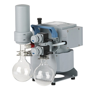 VACUUBRAND® Dual Application Vacuum Pumps utilize VACUUBRAND® Oil-free Chemistry Design Vacuum Pumps to increase lab efficiency and reduce the cost of vacuum generation. Operating two different applications from a single pump saves money and lab bench space. These vacuum systems are available with manual control, electronic control or both. Integrated check valves minimize interaction between applications.