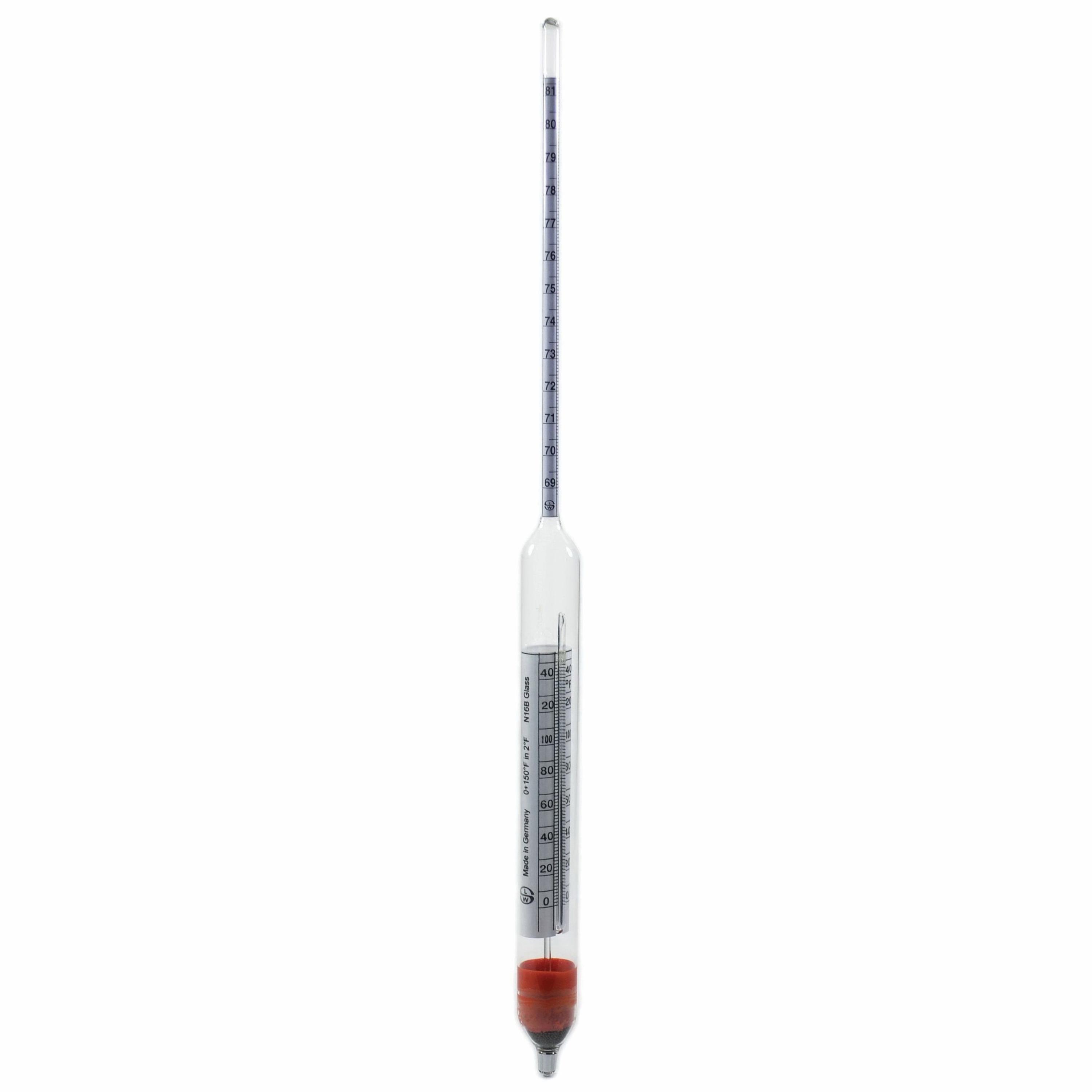 Precision Hydrometer, 163 mm L, ASTM Number 21H, 0 to 6° API Range, Plain Form, Glass, 0.1° Division, Suitable Thermal Properties for the Entire Temperature Range, Resists any Reactions from Chemical Agents